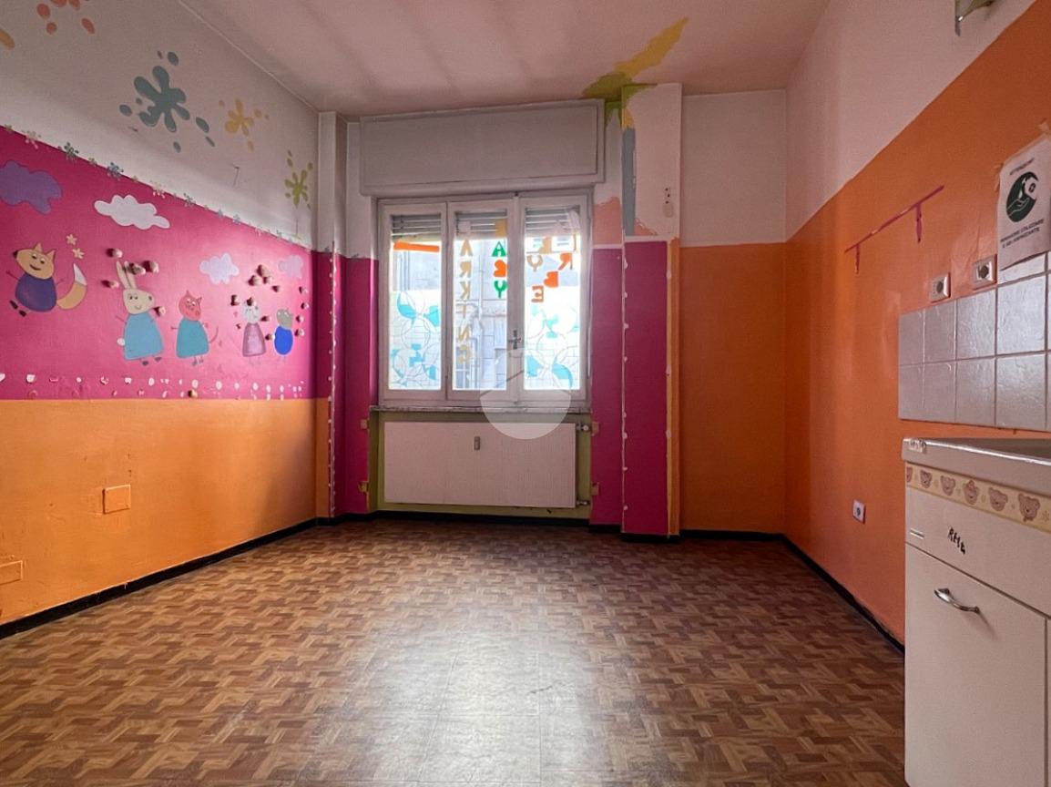 Via Gioacchino Rossini, nella zona centrale di Asti, appartamento al piano rialzato in palazzina in paramano. L'immobile gode di quattro aree d'esposizione e si presenta con alcuni interventi di ristrutturazione da effettuare. Gode di due porte d'ingresso ed un ampia metratura il che lo rende ideale ad un futuro frazionamento come investimento. La porta d'ingresso principale concede l'accesso su un disimpegno, ambiente che conduce ad un luminoso soggiorno doppio, locale che accompagna a tutti gli ambienti dell'appartamento. La cucina è spaziosa e sono presenti tre camere da letto. I due bagni sono entrambi finestrati e riadattabili alle proprie esigenze. Completa la proprietà una cantina al piano interrato. La soluzione è in zona comoda ai principali servizi del centro di Asti.